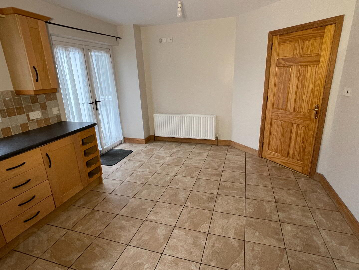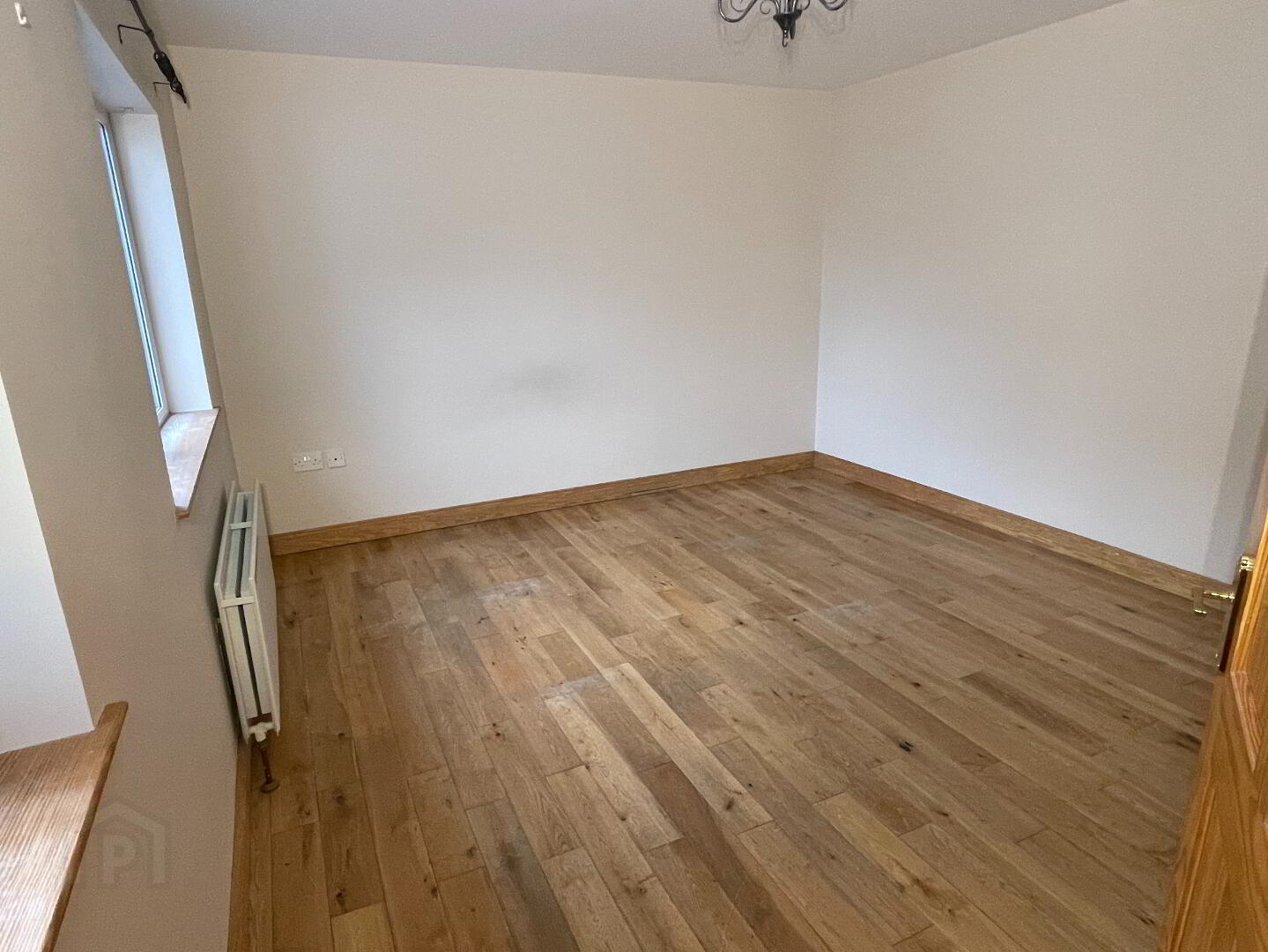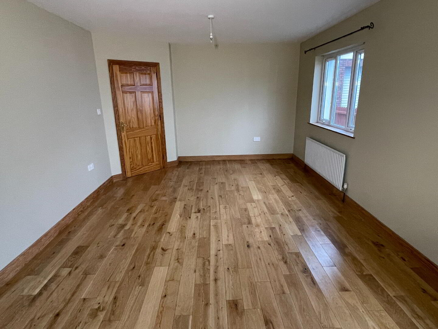 Centre light, solid oak wooden floor, double radiator, TV point, 2 double power points.