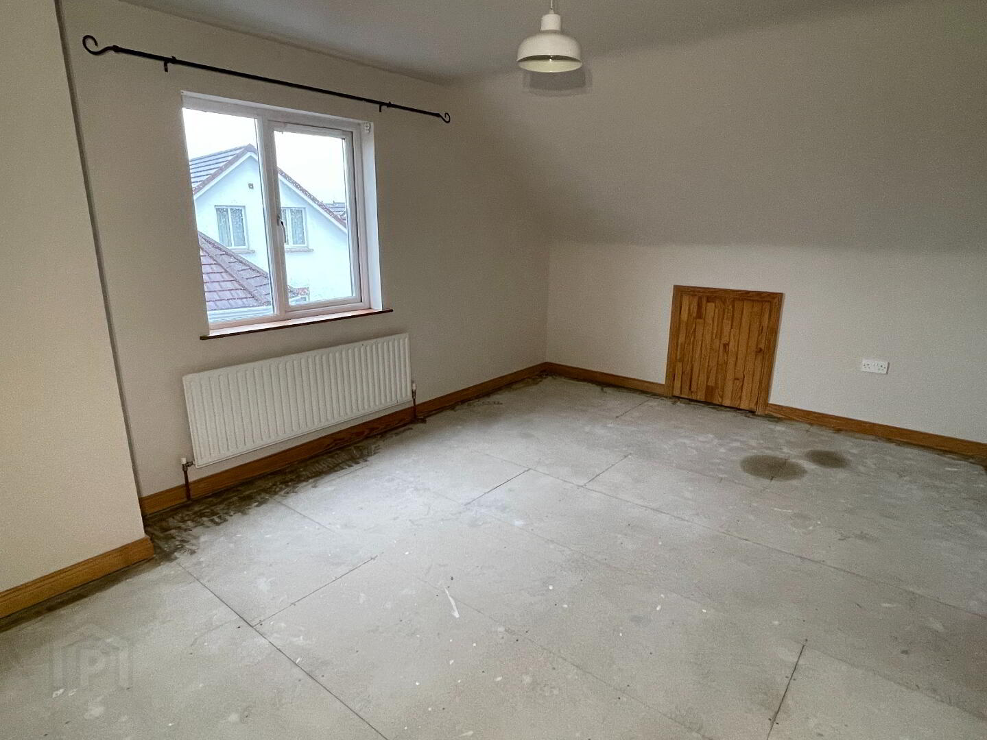 Centre light, 2 double power points, TV point, single radiator, 2 under eave storage cupboards.