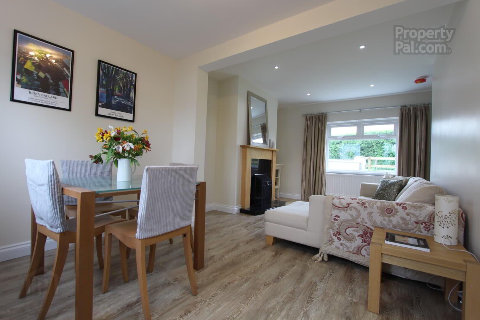 Lounge & Dining Area – Open plan accommodation with laminate flooring and a feature open fire with hearth and surround.