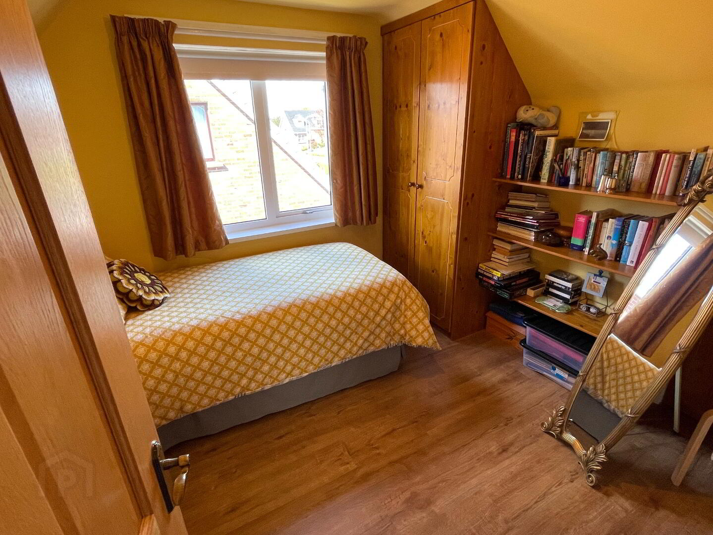Centre light, laminate floor, double radiator, 2 double power points, under eaves storage cupboard, built-in wardrobe with shelving.