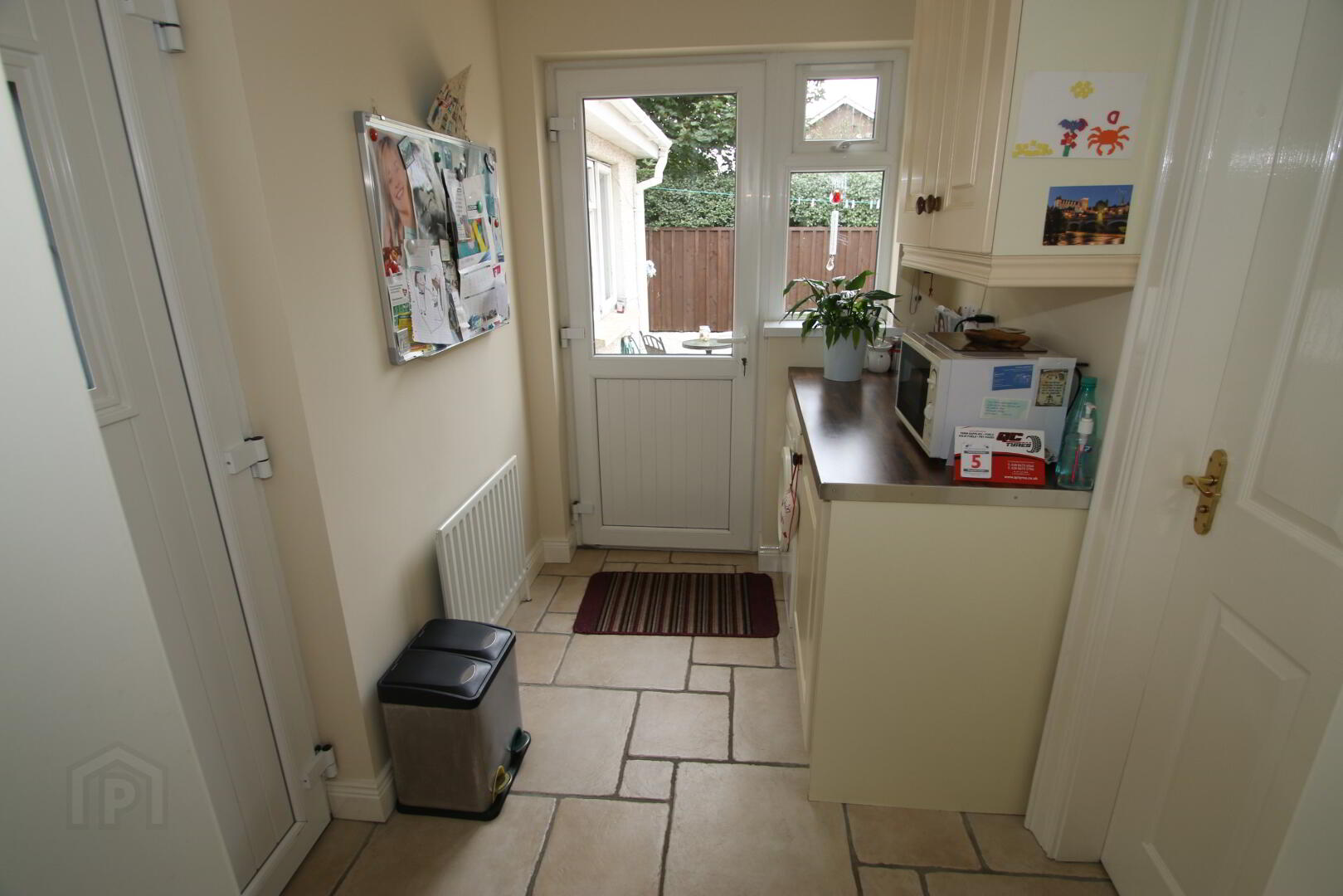 Centre light, tiled floor, 1 double power point, single radiator, ½ glazed UPVC external door to patio area, UPVC external door with decorative glass insert to drive, plumbed for washing machine.