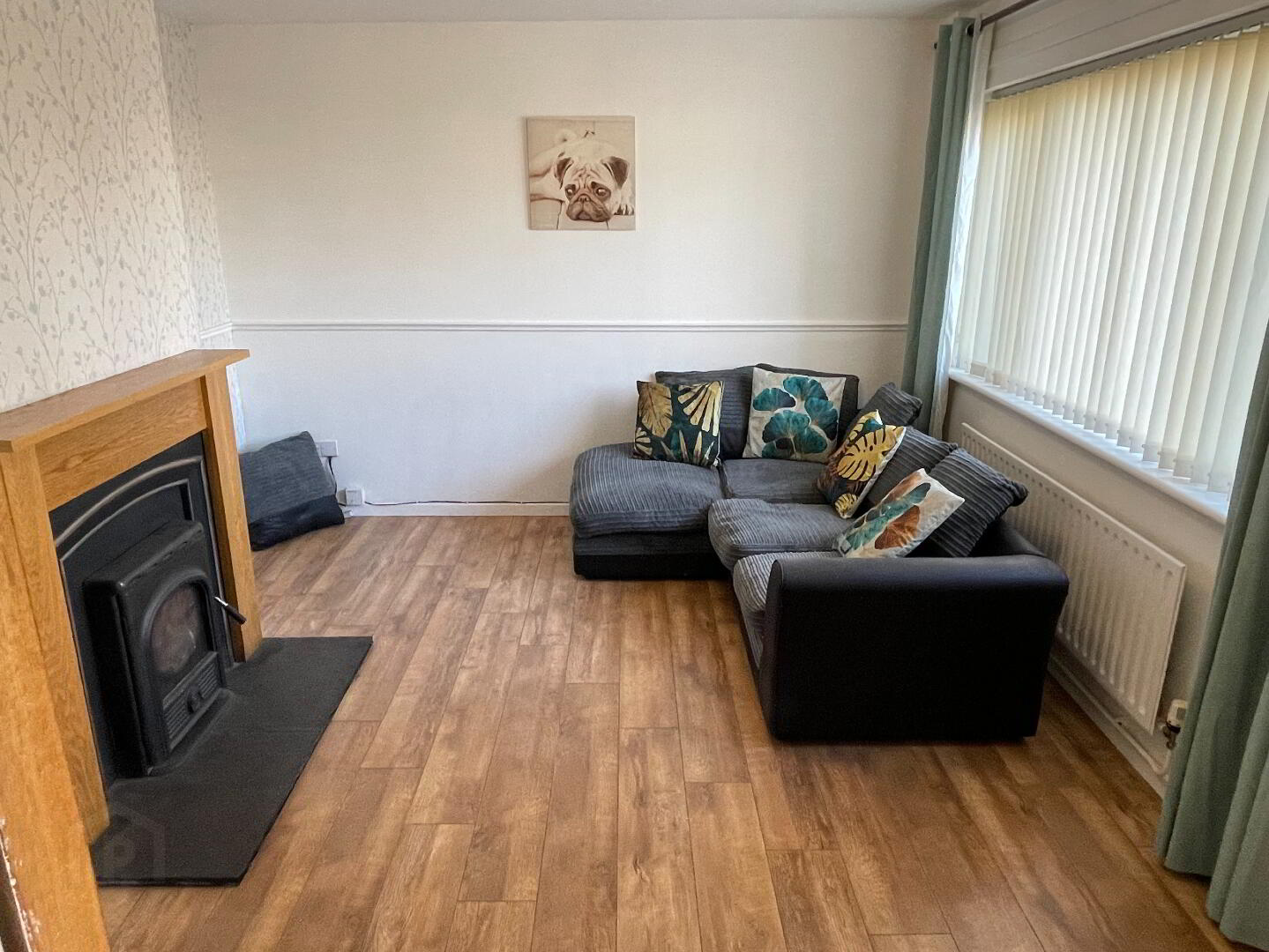 Centre light, centrepiece, laminate floor, single radiator, 1 double power point, 1 single power point, telephone point, oak style fireplace with back boiler cast iron style insert and slate hearth.