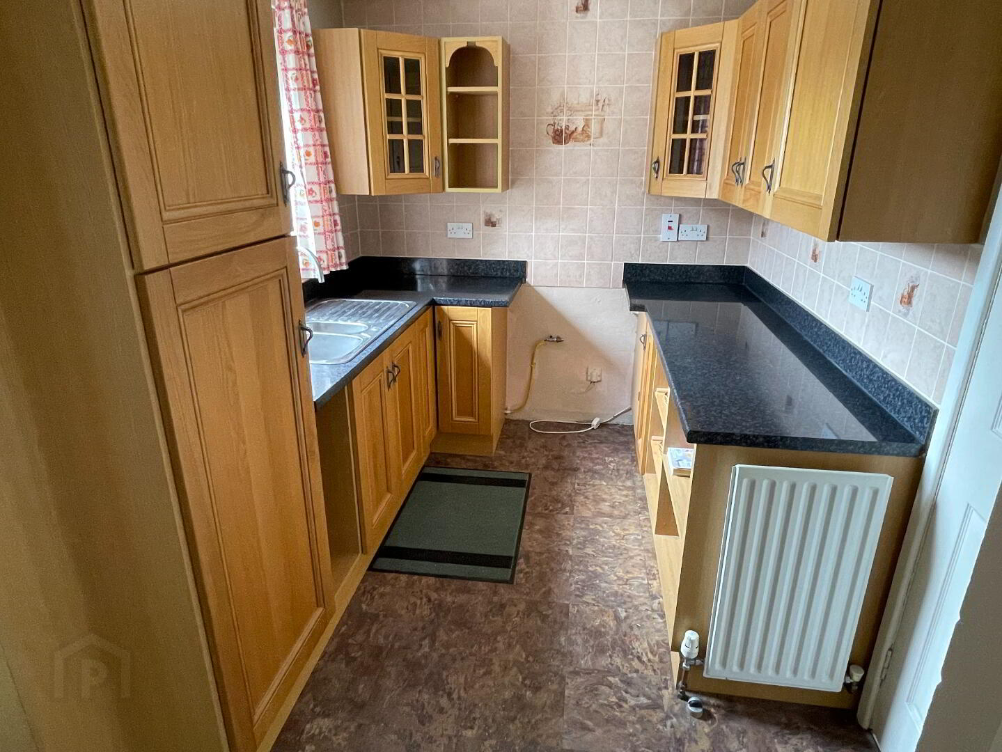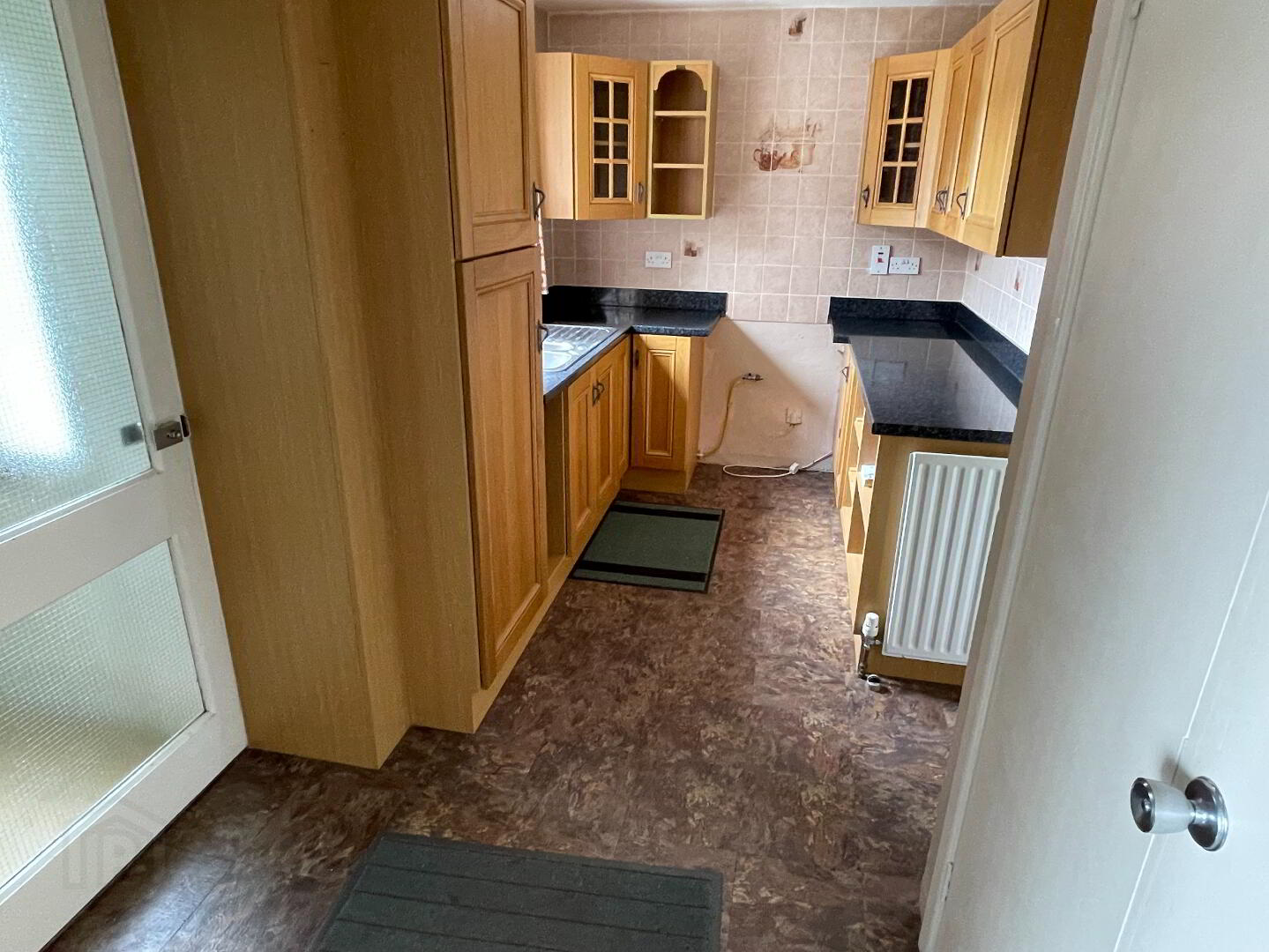 Recessed lighting, tiled floor, partly wall tiled, central heating control, UPVC external door with two glass panels, storage units, plumbed for washing machine, space for tumble dryer, 1 double power point.