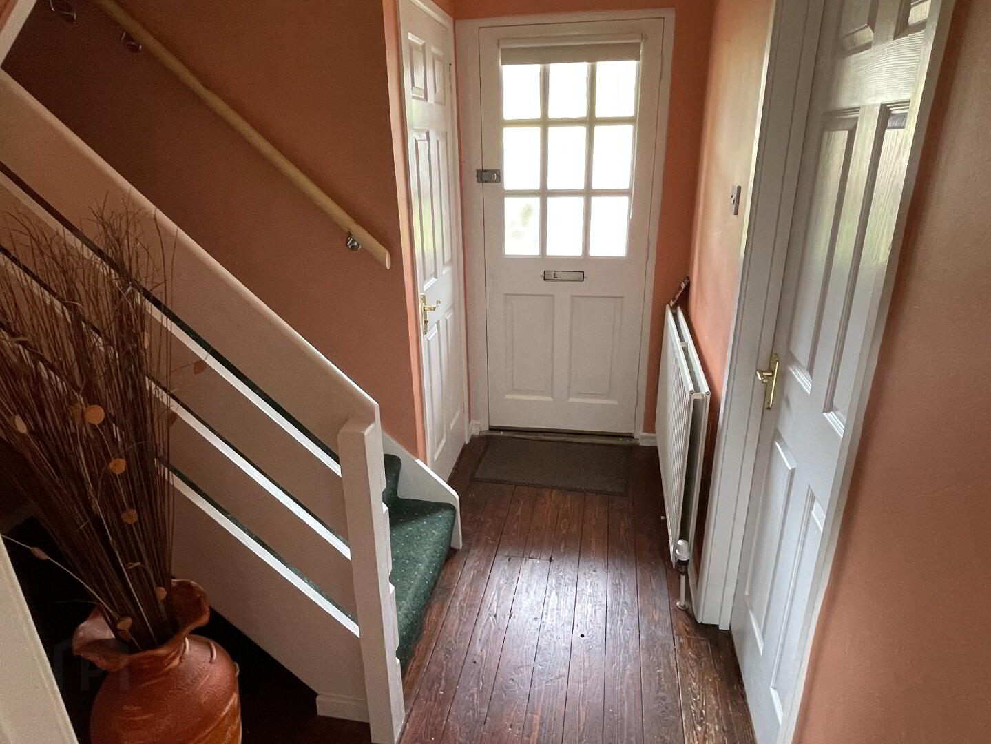 2 centre lights, high and low level oak style kitchen units, 2 glass display units, stainless steel sink, partly wall tiled, 3 double power points, 1 single power point, space for cooker and fridge freezer, cloak cupboard, tiled floor, single radiator, glazed door to utility room.