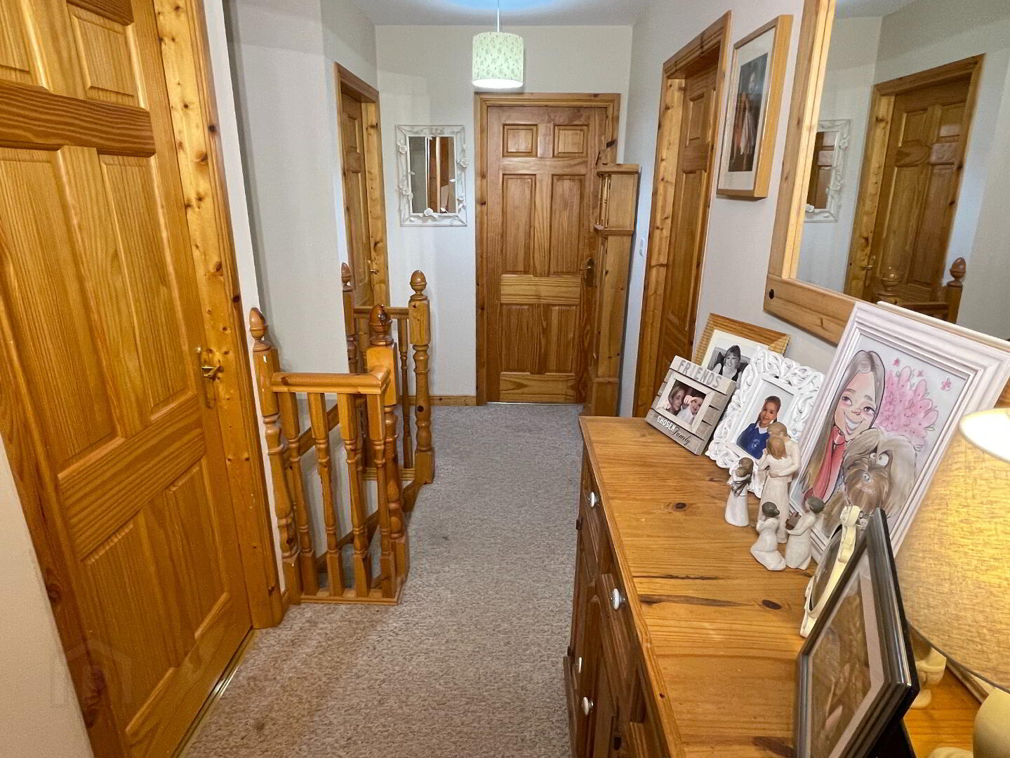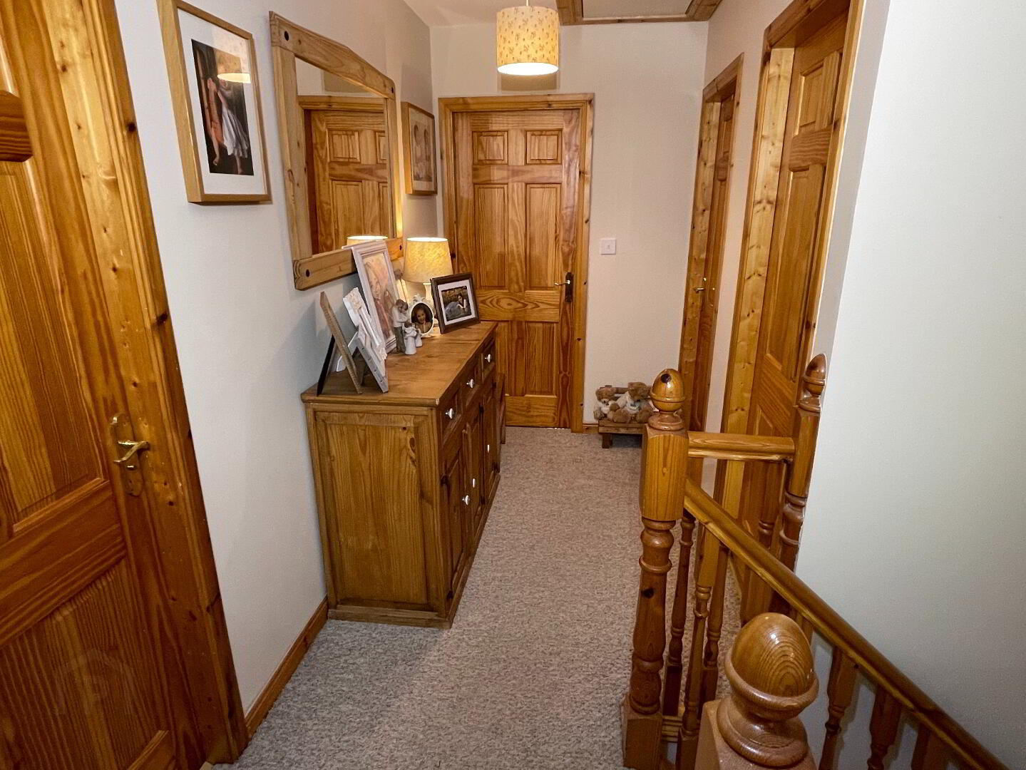 2 centre lights, stairs and landing carpeted, 1 single power point, walk-in shelved airing cupboard (centre light).