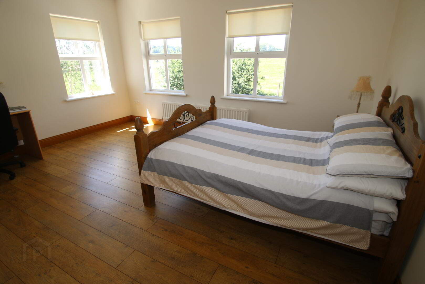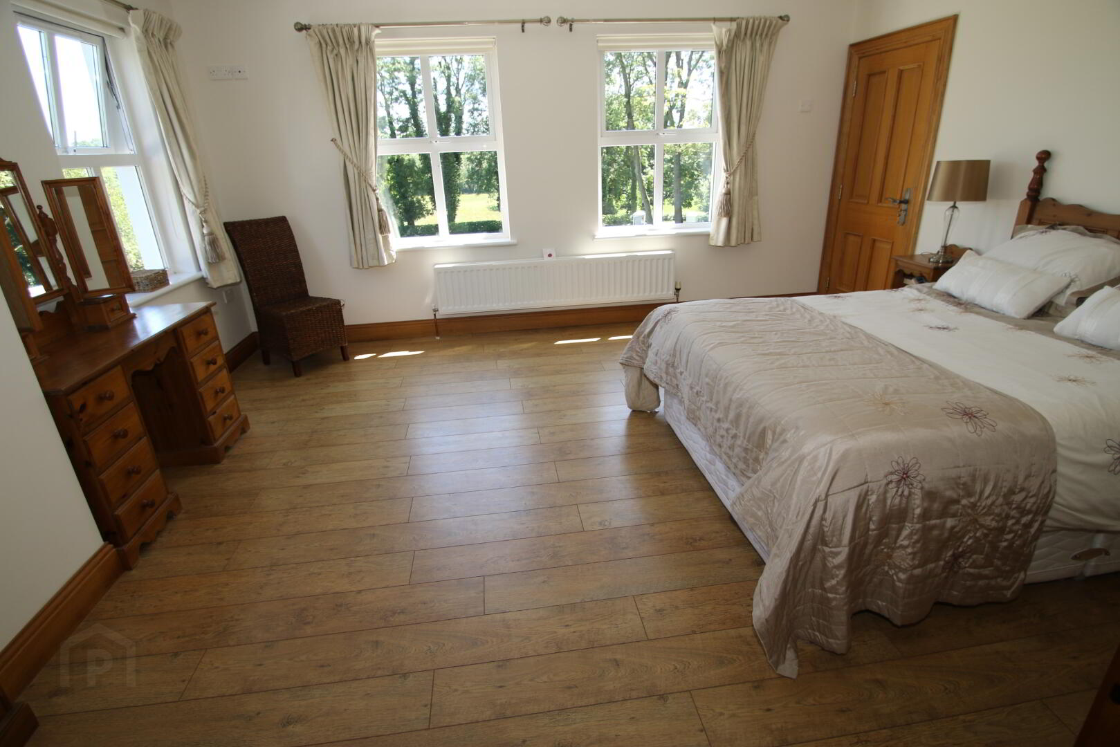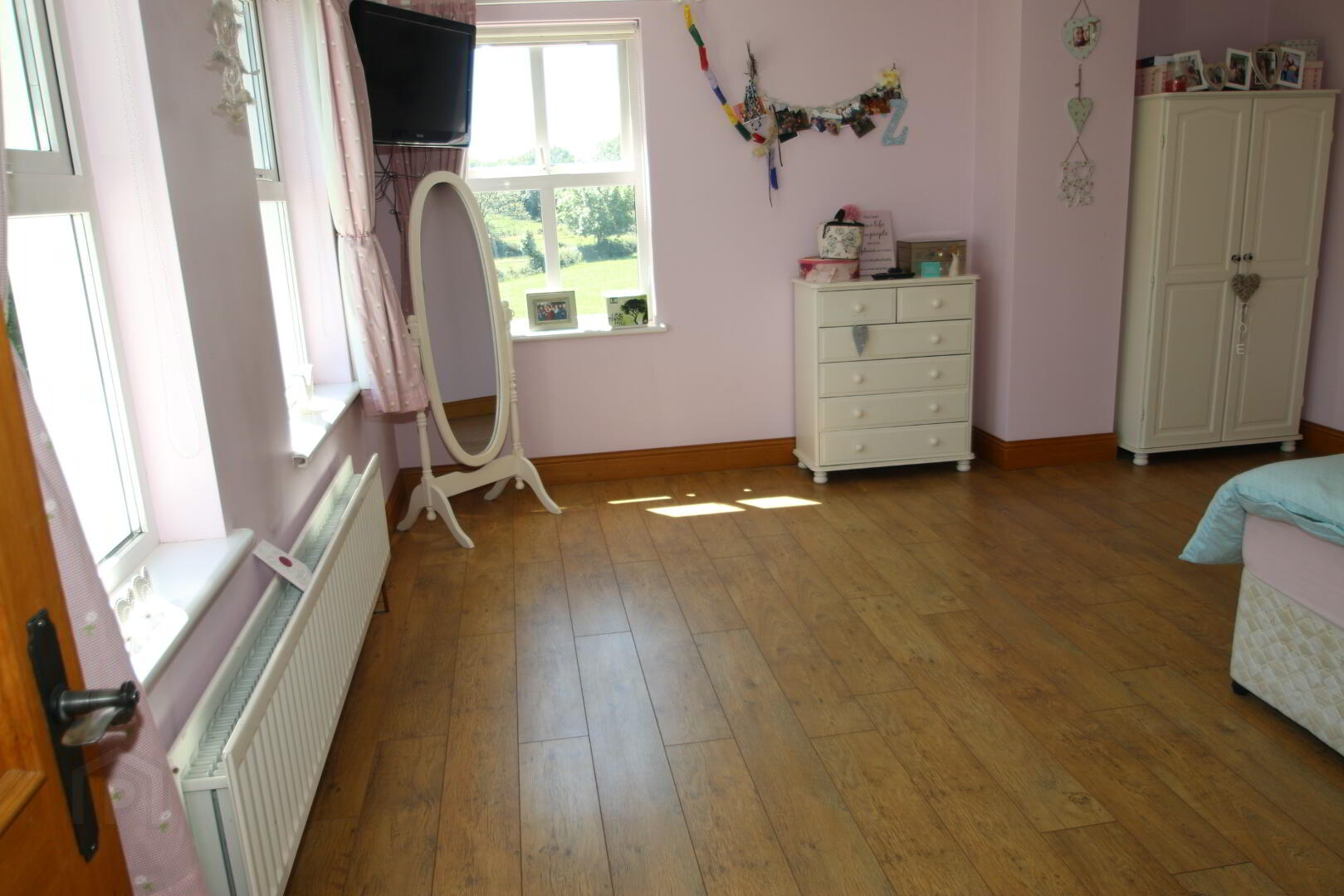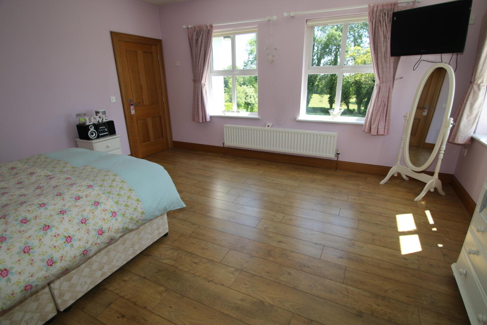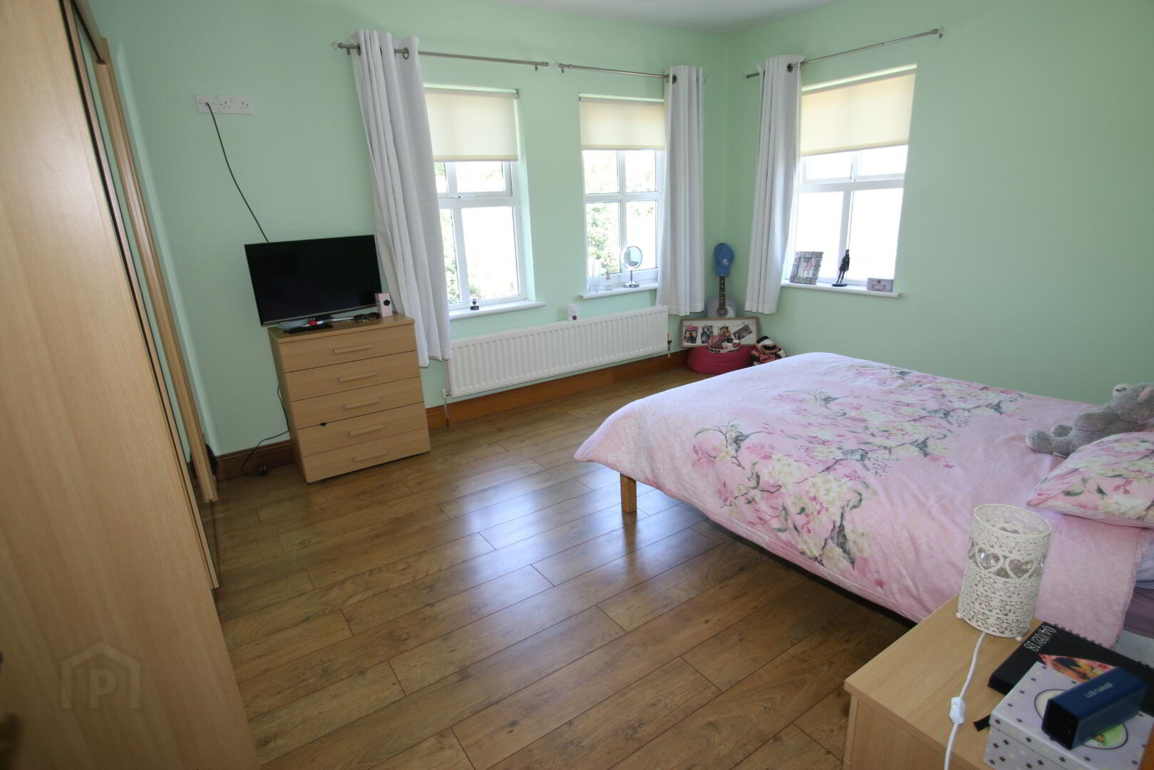 Centre light, 4 double power points, double radiator, TV point, laminate floor.