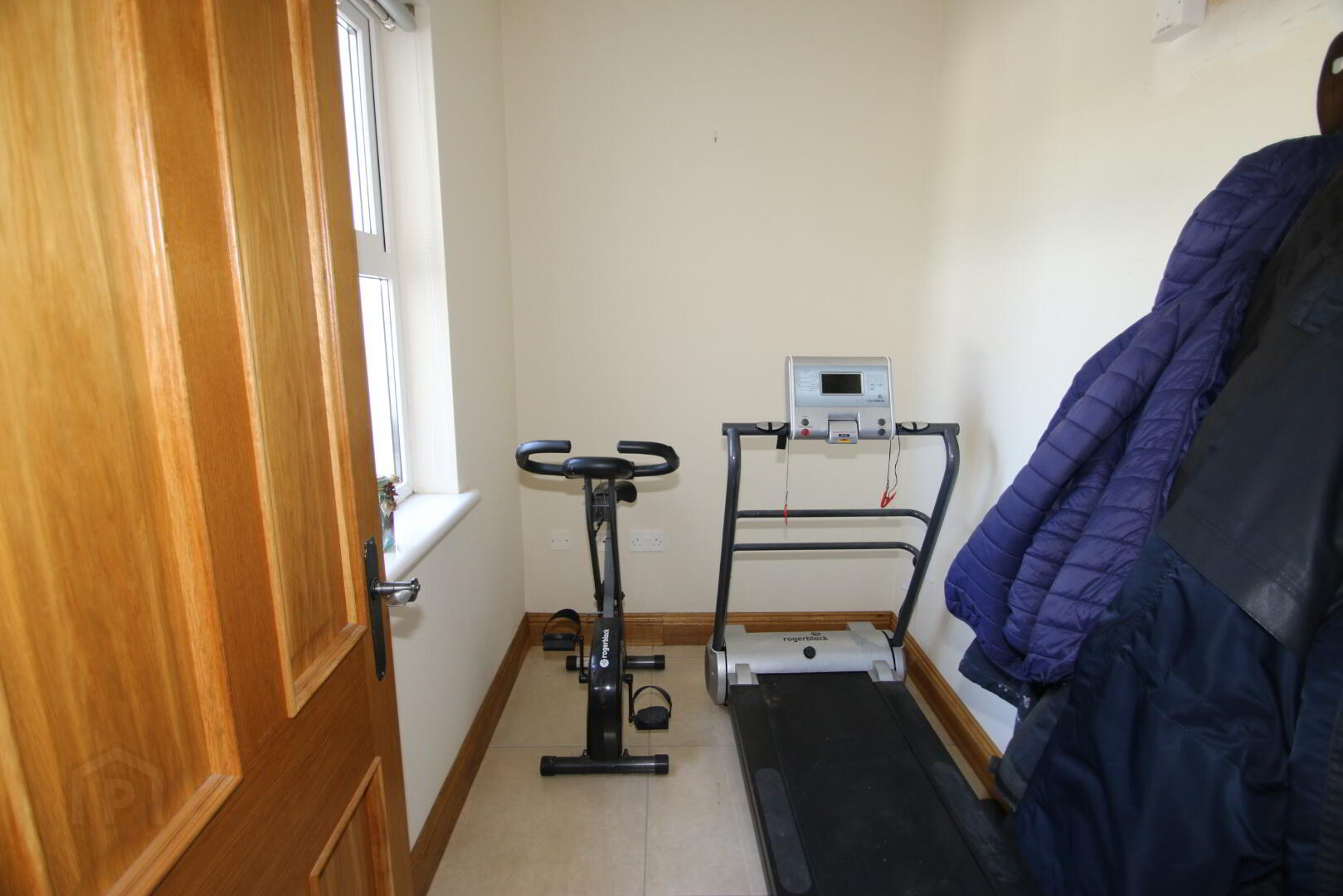 Centre light, tiled floor, Hardwood ½ glazed rear door.