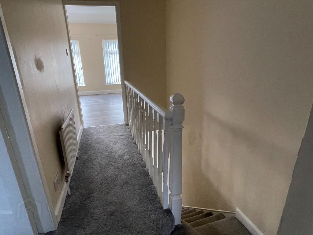 Centre light, stairs and landing carpeted, single radiator, 1 double power point.