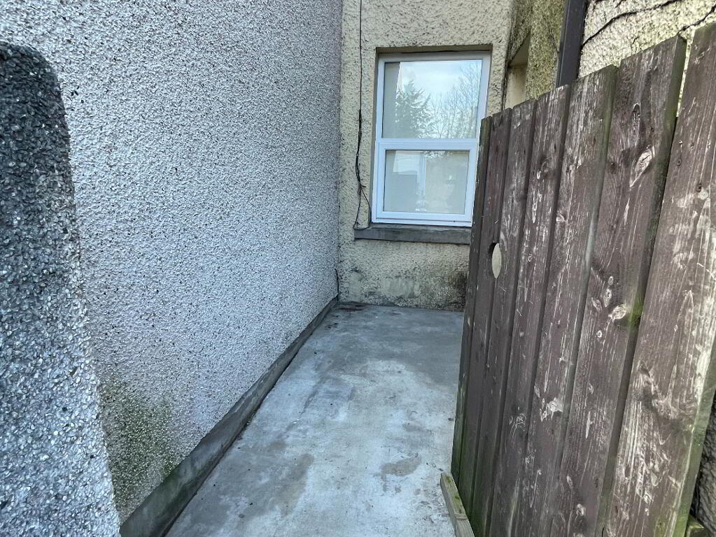 Small concrete yard, back gate, oil tank, oil burner, outside tap.