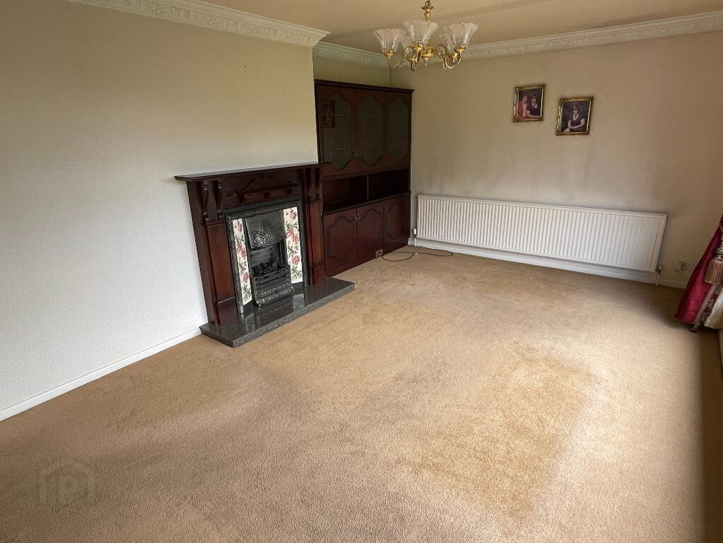 Centre light, dimmer switch, centrepiece, coving, carpeted, double radiator, 2 double power points, mahogany built-in storage units and 3 glass display units, mahogany gas fireplace with decorative tiled and cast iron style insert and granite hearth.