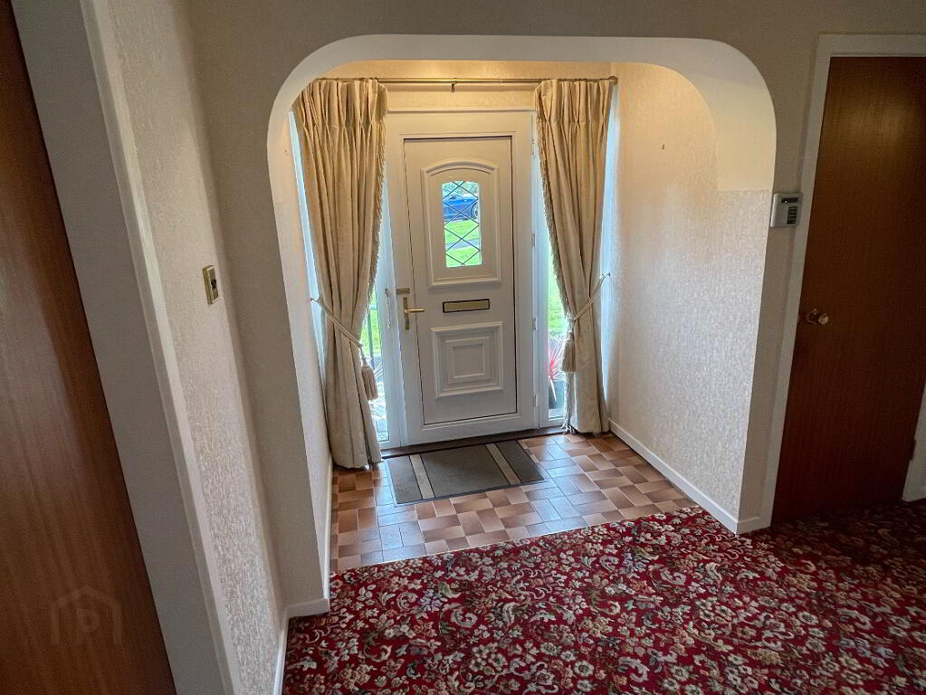Centre light, wall light, carpeted with tiled area at the entrance door, 1 double power point, telephone / internet point, UPVC external door with glass insert and 2 glass panels to side.