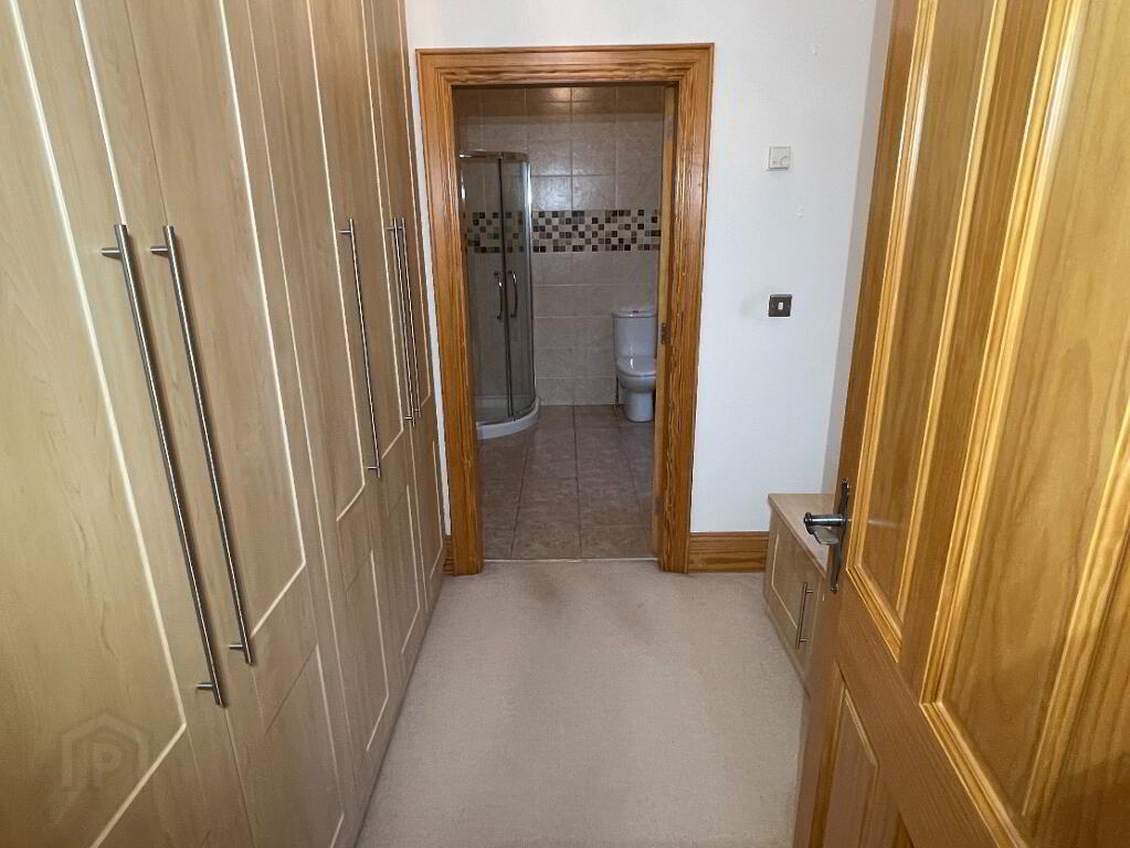 2 centre lights, thermostat, carpeted, (underfloor heating), beech effect built-in bedroom furniture, 5 double power points.