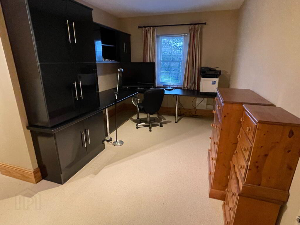 2 centre lights, thermostat, carpeted (underfloor heating), 5 double power points, built-in black high gloss storage units with desks, access to roof space.