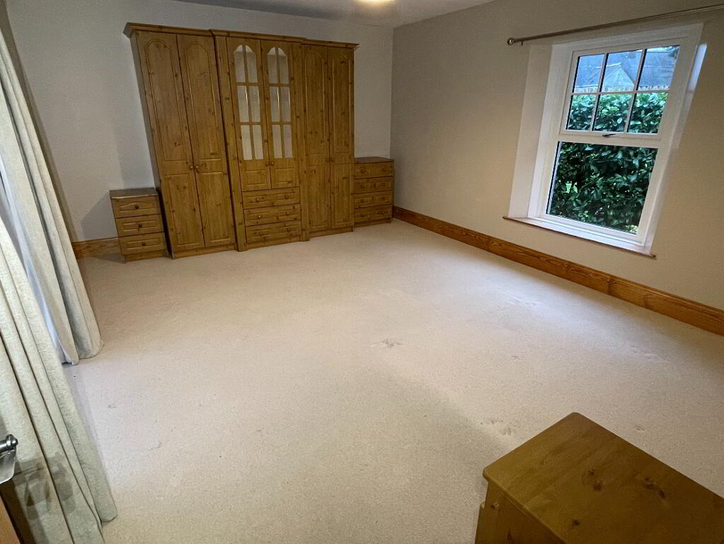 Centre light, thermostat, carpeted, (underfloor heating), 3 double power points, TV point, limestone fireplace suitable for solid fuel.