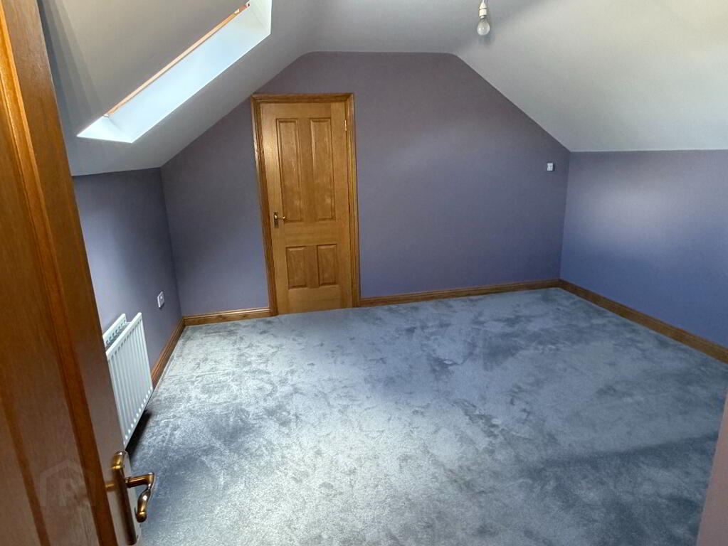 Centre light, carpeted, double radiator, 2 double power points, Keylite roof window.