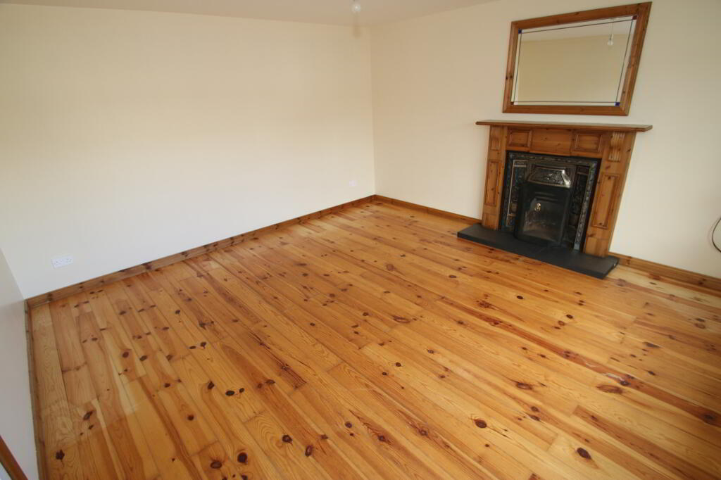 Centre light, double radiator, solid pine wooden floor, pine fireplace with cast iron style insert and tiled hearth (suitable for solid fuel), 3 double power points, TV point, telephone point.