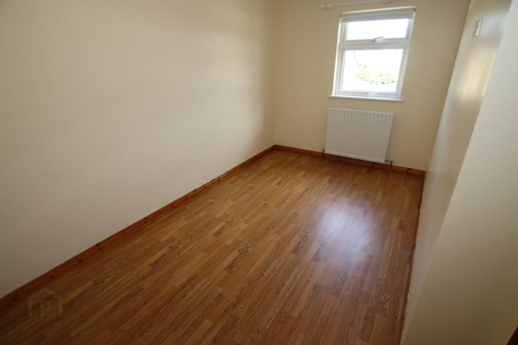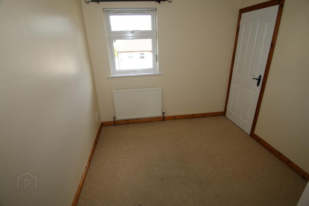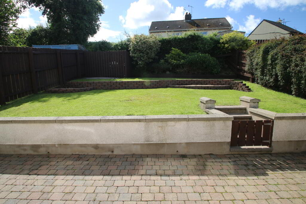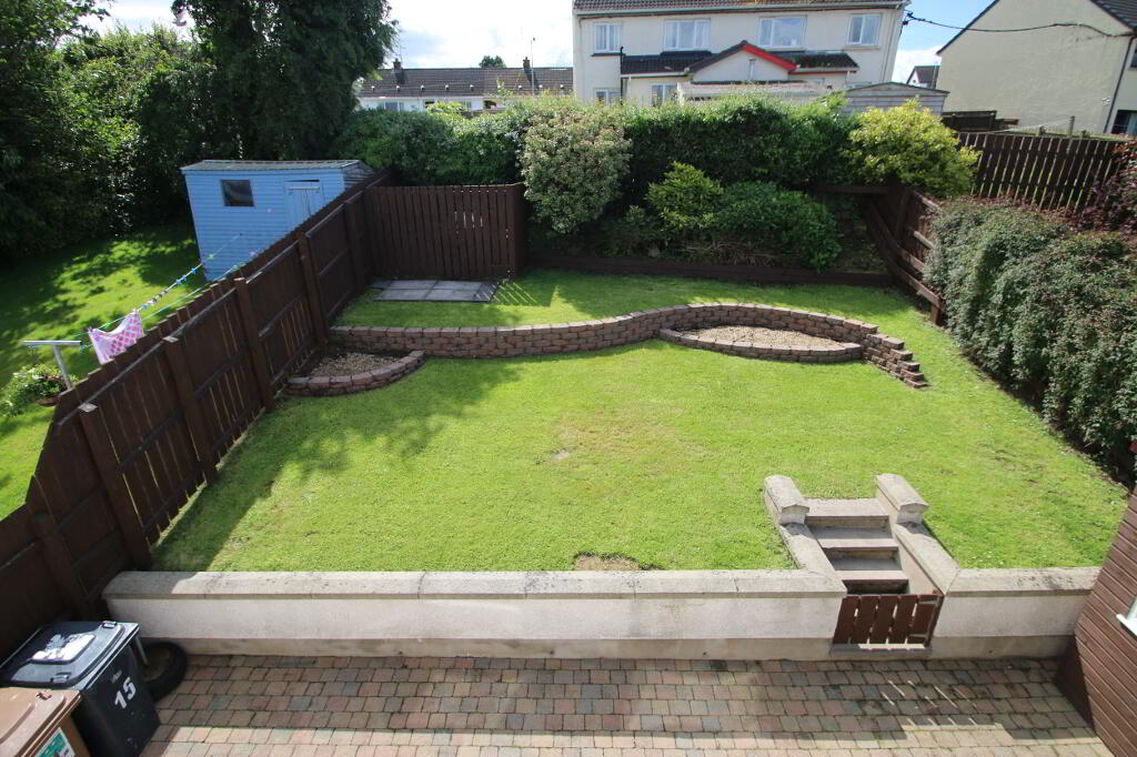 Lawn fenced on 2 sides with hedge to rear, oil tank, oil burner, paved patio area, gate, garden shed, outside tap.