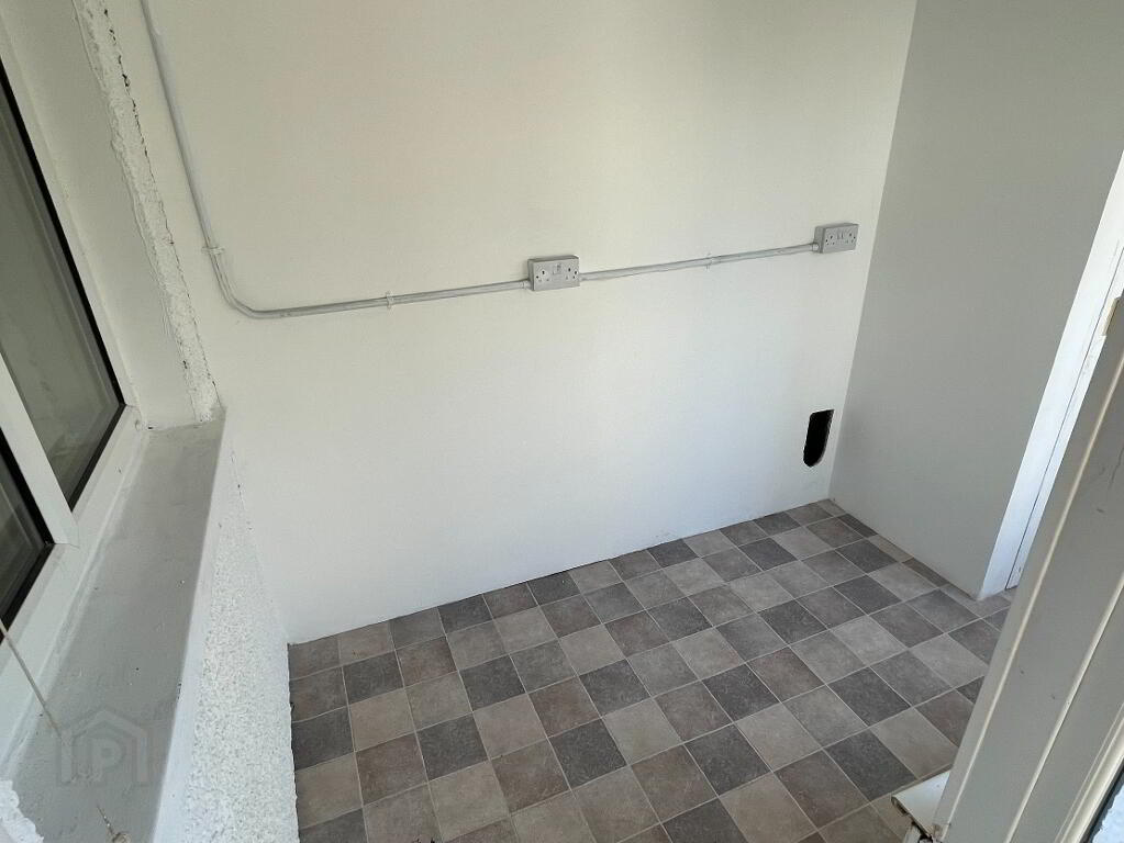 Oil burner, plumbed for washing machine, UPVC glazed external door to rear with 2 glass panels to side.