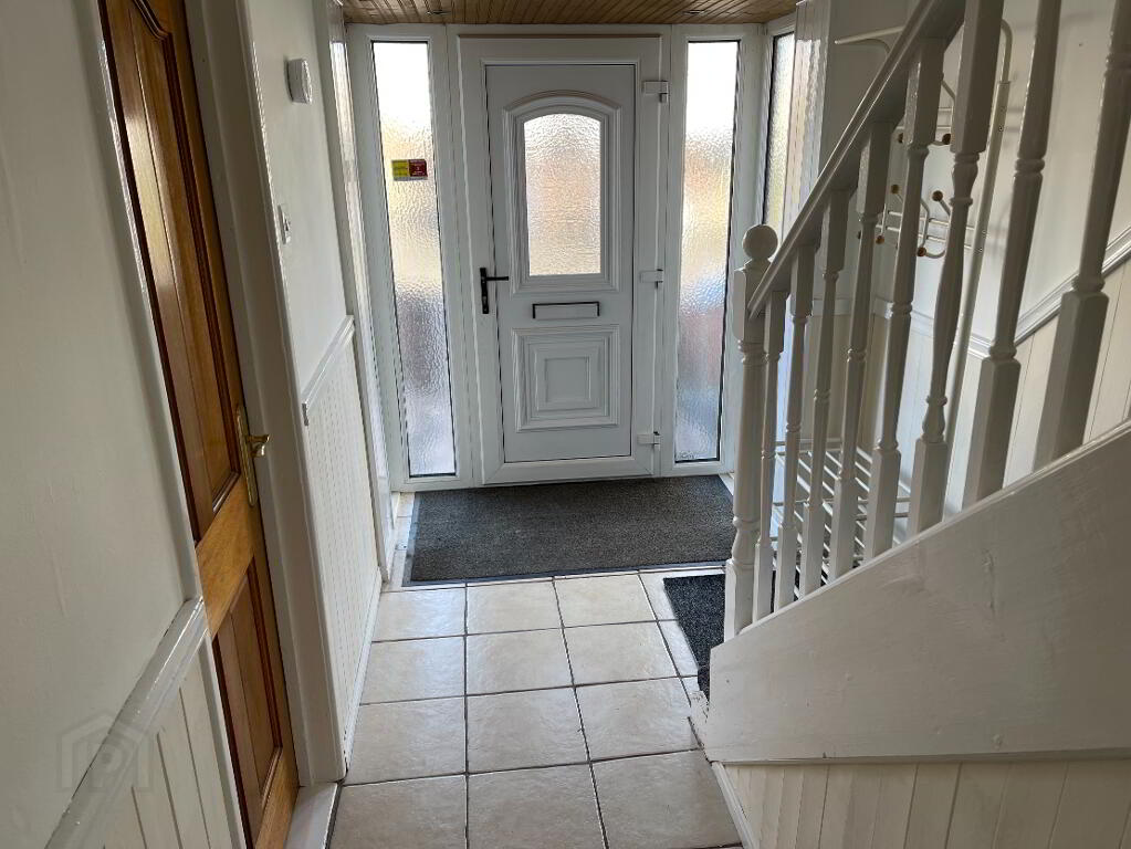 Centre light, recessed lighting, tiled floor, single radiator, painted tongue and groove panelling to walls, UPVC external door with glass insert and 6 glass panels to side, understairs storage cupboard.