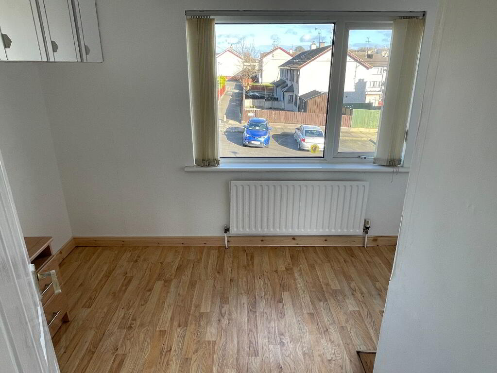 Centre light, laminate floor, single radiator, 1 double power point, 1 single power point, built-in wardrobe with overhead lockers.