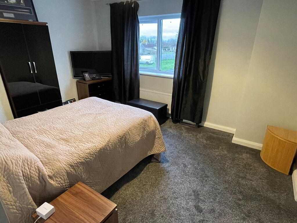Centre light, carpeted, thermostat, double radiator, TV/internet point, 4 double power points.