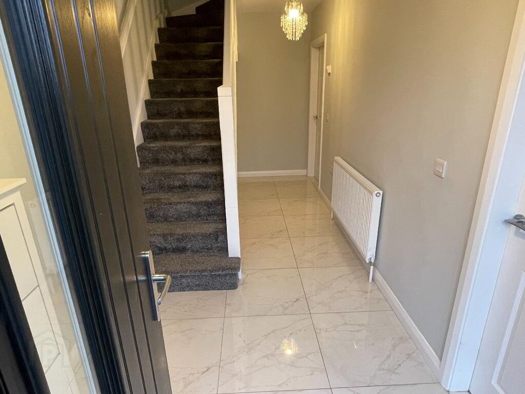 2 Centre lights, tiled floor, single radiator, thermostat, 1 double power point, UPVC composite external door with glass insert and glass panel to side.